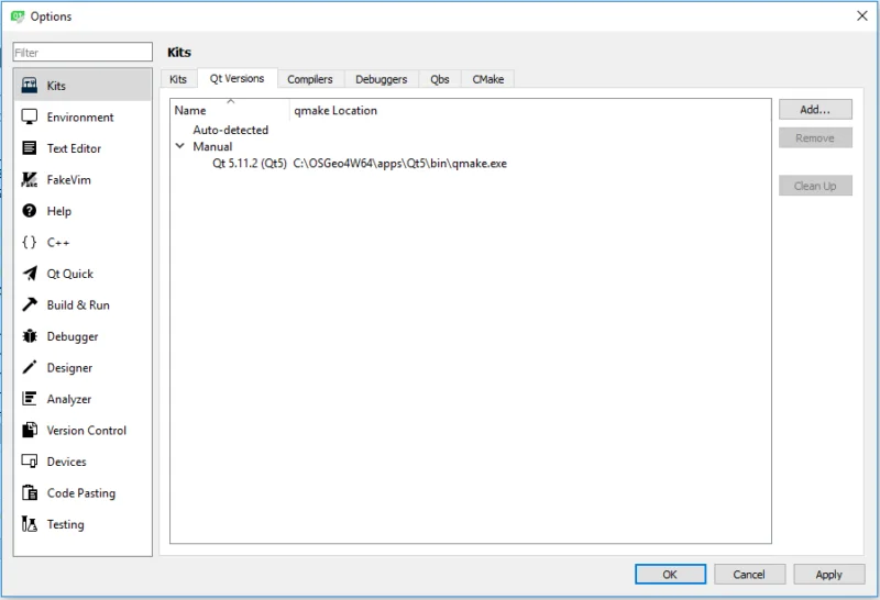 Building QGIS on Windows 10 with Qt Creator