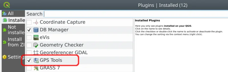 Do you want to share your GPS data from your phone to QGIS? Here is how:   QGIS comes with a core plugin named GPS Tools that can be enabled in the Plugin installer dialog:   There are several ways to forward data from your phone and most of them are very well described in the QGIS manual page: https://docs.qgis.org/testing/en/docs/user_manual/working_with_gps/plugins_gps.html What I’m going to describe here is mostly useful when your phone and your host machine running QGIS are on the same network (for example they are connected to the same WiFi access point) and it is based on the simple application GPS 2 NET   Once the application is installed and started on your phone, you need to know the IP address of the phone, on a linux box you can simply run a port scanner and it will find all devices connected to the port 6000 (the default port used by GPS 2 NET):