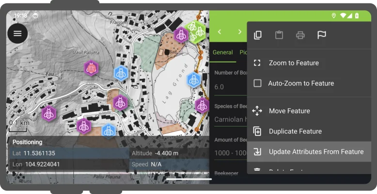 Also landing in this version is support for copying and pasting vector features into and from the clipboard. This comes in handy in multiple ways, from providing a quick and easy way to transfer attributes from one feature to another through matching field names to pasting the details of a captured feature in the field into a third-party messenger, word editing, or email application. Copying and pasting features can be done through the feature form’s menu as well as long pressed over the map canvas. Moreover, a new feature-to-feature attributes transfer shortcut has also been added to the feature form’s menu. Appreciation to Switzerland, Canton of Lucerne, Environment and Energy for providing the funds for this feature.